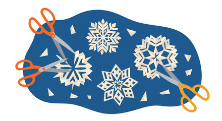 Crafting delicate paper snowflakes by hand with scissors, a joyful winter activity for creative expression and festive decor