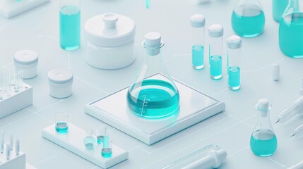 A futuristic depiction of research and development RD activities with lab equipment and digital research data, isolated with room for text on a clean background