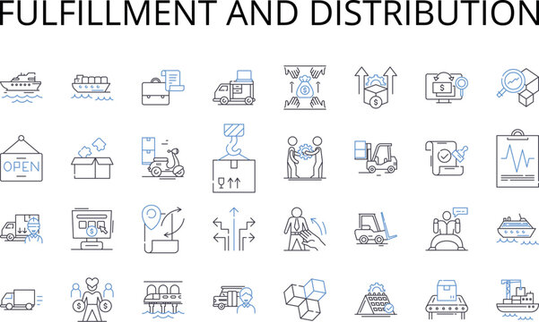 Fulfillment and Distribution line icons collection. Accomplishment, Delivery, Dispatch, Execution, Provision, Gratification, Dispensation vector and linear illustration. Generative AI