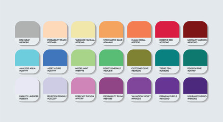 Actuary Color Guide Palette with Color Names. Catalog Sample Actuaries with RGB HEX codes and Names. Colors Palette, Media newspaper Actuary Color Palette, Fashion Trend Actuary, Tamil Color Palette