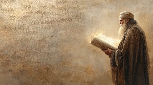 Ancient Wisdom, Modern Light - Solomon Represented by Wise Elder, Glowing Words of Proverbial Insight