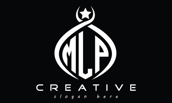 MLP three letters monogram curved initial logo design, geometric oval minimalist modern logo, vector template