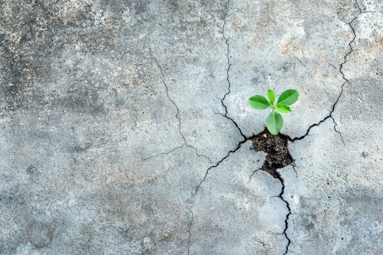 Emerging growth of a small plant through cracks in concrete urban environment nature photography close-up view resilience in harsh conditions