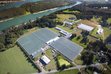 Aerial view of a greenhouse growing legal cannabis in Canada.