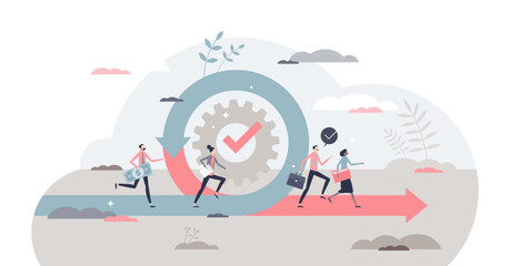Agile as fast and effective business adaption to changes tiny person concept, transparent background. Performance management with flexible strategy and quick improvements illustration.