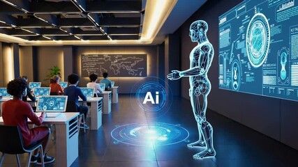 An AI powered online education and e-learning platform. A concept of personalized video courses and adaptive learning in a virtual classroom. Motif