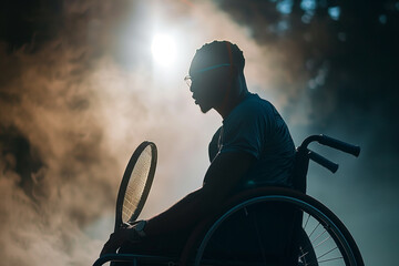 Close-up of wheelchair tennis player preparing to serve in adaptive sports