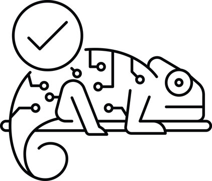 Adaptable Learning icon. Chameleon representing flexibility in AI learning systems. Ideal for adaptive strategies. Simple Black outline