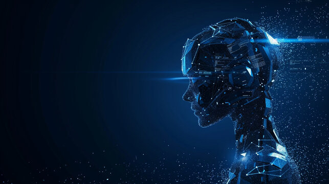 An AI-driven chat bot evolving, represented by a transforming wireframe, chat bot concept, dynamic and dramatic compositions, with copy space