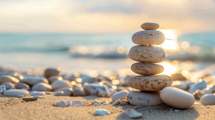 A peaceful beach scene with the words Calm your mind and body with adaptogen supplements natures stress relievers. .