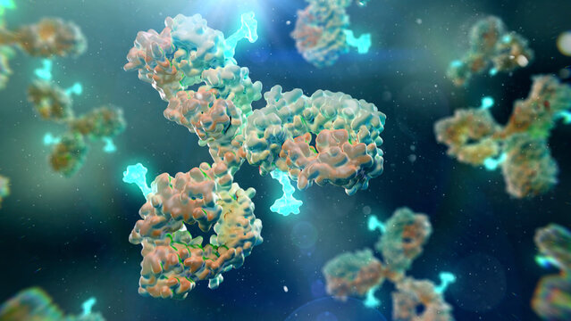 3D Rendering of Antibody Drug Conjugate Molecules - ADC - with cytotoxic payload