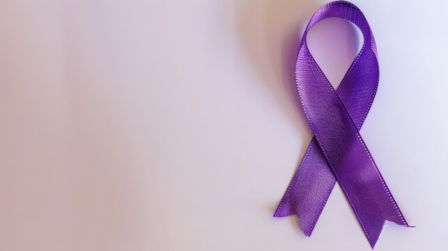 A purple ribbon symbolizing support for various causes like animal abuse Alzheimer s disease domestic violence epilepsy lupus sarcoidosis Crohn s disease and pancreatic cancer stands out ag