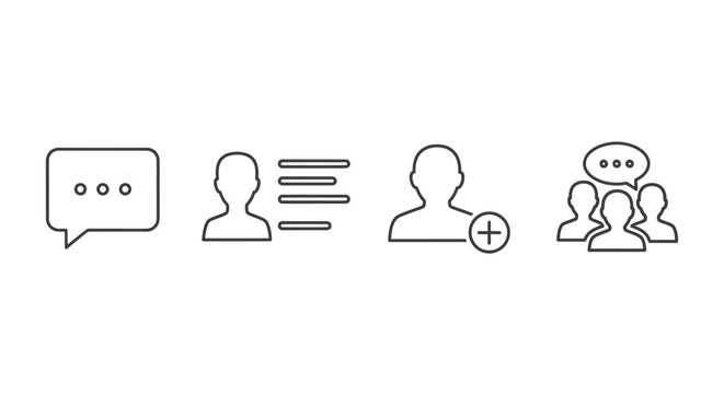 Four icons depicting communication, profile, adding a user, and a group chat, all in a simple line art style.