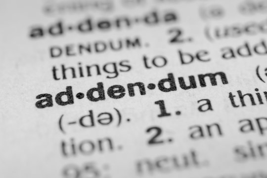 Addendum red rubber stamp isolated on transparent background with distressed texture effect