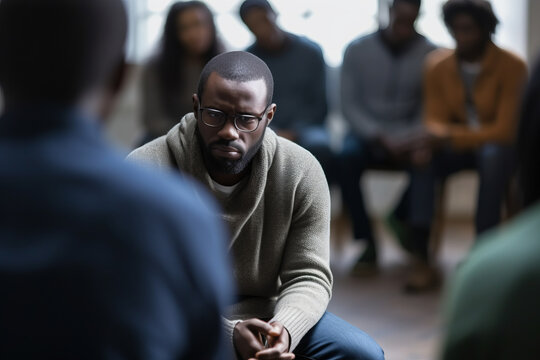 Young man talking about his mental health on a group therapy session