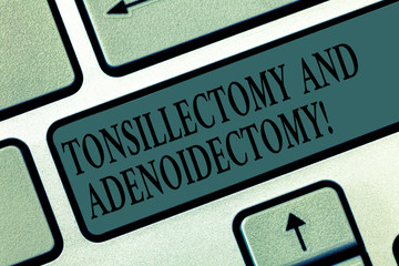 Word writing text Tonsillectomy And Adenoidectomy. Business concept for Procedure in removing tonsil and adenoid Keyboard key Intention to create computer message pressing keypad idea