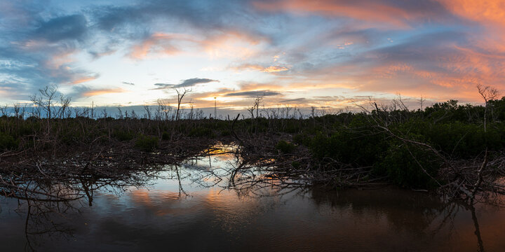 Vue panoramique d'un coucher de soleil sur le Golden Orb Trail sur l'île de Long Key dans les Keys, Floride, USA