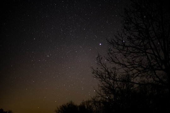 Night Sky Behind Trees, with Sirius and Greater Dog constellation
