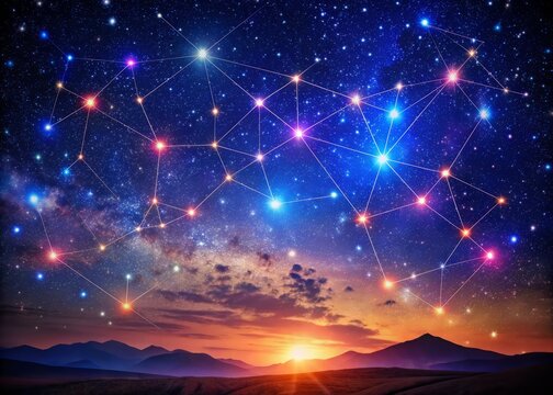 Vibrant night sky with infinite stars, featuring prominent constellations such as Orion, Cassiopeia, and Ursa Major,