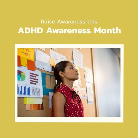 Adhd awareness ribbon on woman's t-shirt highlighting awareness month