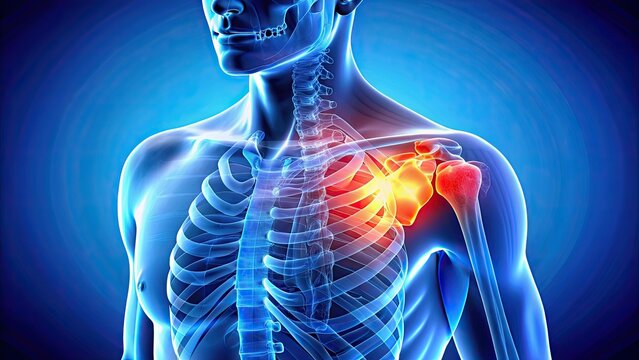 3D rendered Medical Illustration of Male Anatomy - Inflamed Shoulder Joint.
