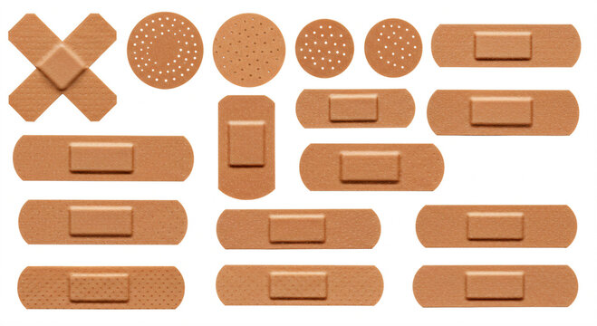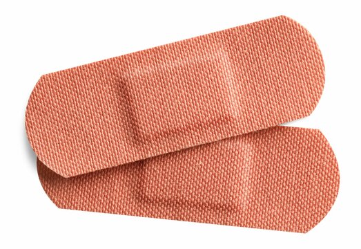 Medical bandage, plaster, band aid. Medical plaster isolated on white background, wound plasterer or bandaged patch, adhesive health care object. Flat style illustration