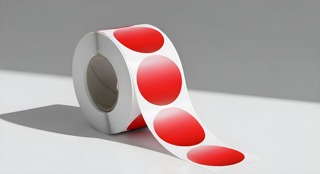 Blank blue round adhesive stickers mock up with curved corner, 3d rendering. Empty circle sticky label . White tags, paper round stickers with peeling corner isolated on Light yellow/ beige background