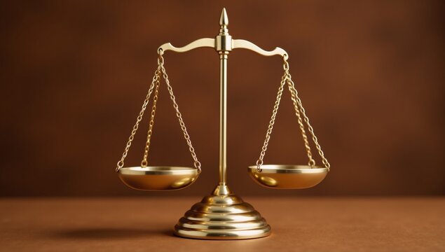 Golden Scale symbolizing Justice  Balance against Warm Brown Backdrop
