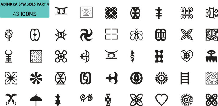 Adinkra Symbols Vector Icons Set. 43 Traditional African Tribal Cultural Design Elements