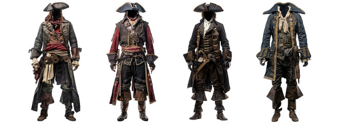 Collection of PNG. Pirate suit mock up isolated on a transparent background.