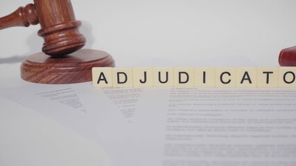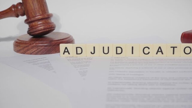 A judge wearing a robe is holding a gavel over a wooden desk, symbolizing law and justice