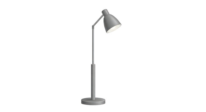 Green articulated desk lamp with adjustable arm and illuminated bulb isolated on a transparent background