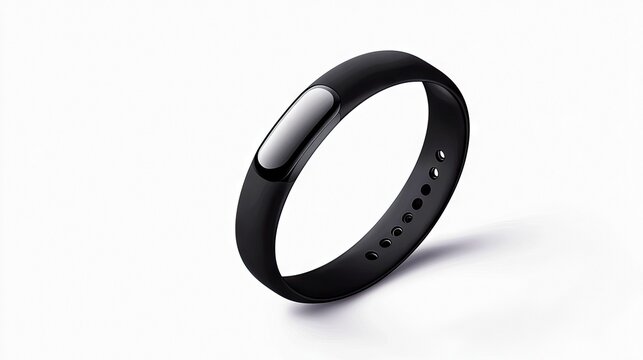 A modern black fitness tracker band with a smooth, reflective surface and adjustable strap, presented against a clean white backdrop.