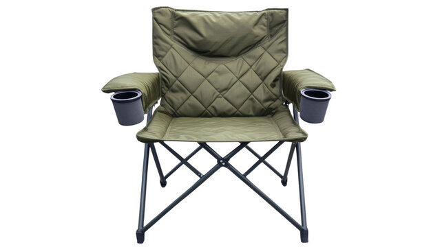 folding chair with cup holders comfortable outdoor chair, isolated on transparent background