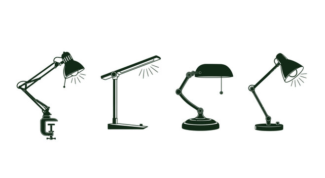 Four distinct desk lamps showcasing modern and traditional designs for workspace illumination vector
