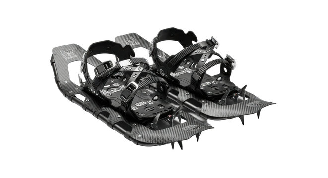 Durable black aluminum snowshoes with adjustable straps for winter adventures