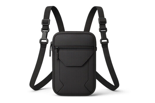 Sleek black sling bag with adjustable straps isolated on transparent background