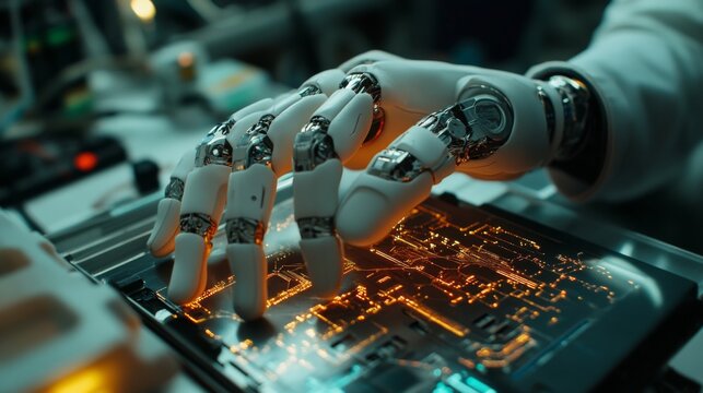 technician yellow jacket and gloves is carefully inspecting and adjusting machinery components, showcasing precision and focus