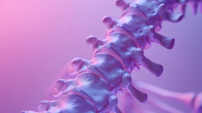 Treatment of a spine, chiropractic adjustment in process, close-up, isolated against a pure solid violet background