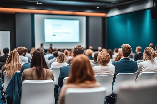 Round table discussion at business convention and Presentation. Audience at the conference hall. Business and entrepreneurship symposium