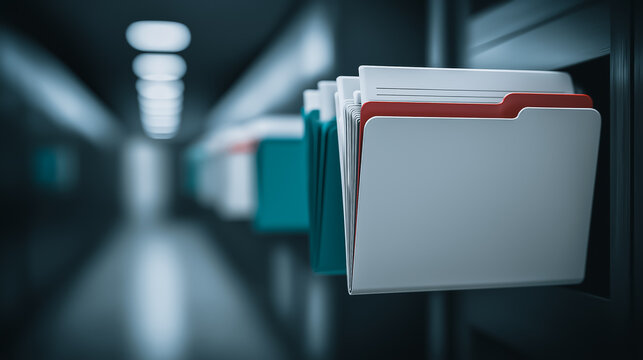 Organized collection of colorful binders on a shelf in an office library setting