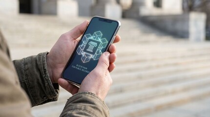 Person using smartphone with employee benefits interface, HR management system, compensation planning, payroll services, insurance policy, workforce administration, digital human resources technology