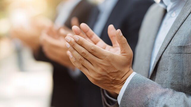 Row of Applauding Businesspeople in Suits: Celebrating Success, Teamwork, and Achievements in a Corporate Environment, Showing Appreciation and Encouragement, Success