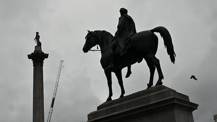 Nelson's Column and the Equestrian Statue of King George IV within Trafalgar Square, London, United Kingdom