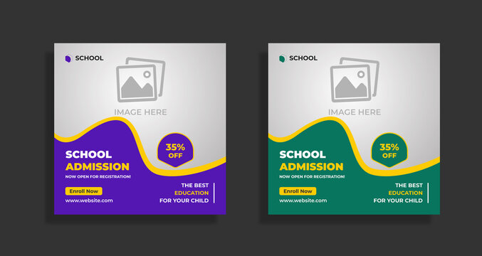 School admission social media post banner, educational social media post square flyer back to school web banner design template.
