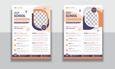 School admission flyer design or kids education poster template. Modern layout with abstract shapes