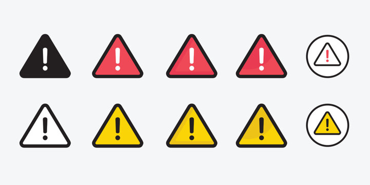 Caution alarm set. Danger sign collection. STOP sign. Warning stop signs.