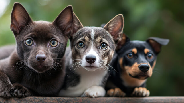 standing dogs with a poster Adopt me. Dont buy - help the homeless animals find a home, kit of sad puppie