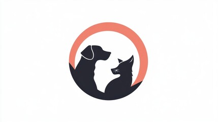 Silhouette of dog and fox, friendly animals, circle logo, veterinary use