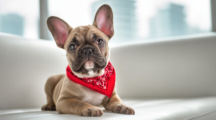 adorable french bulldog puppy with a small accessory